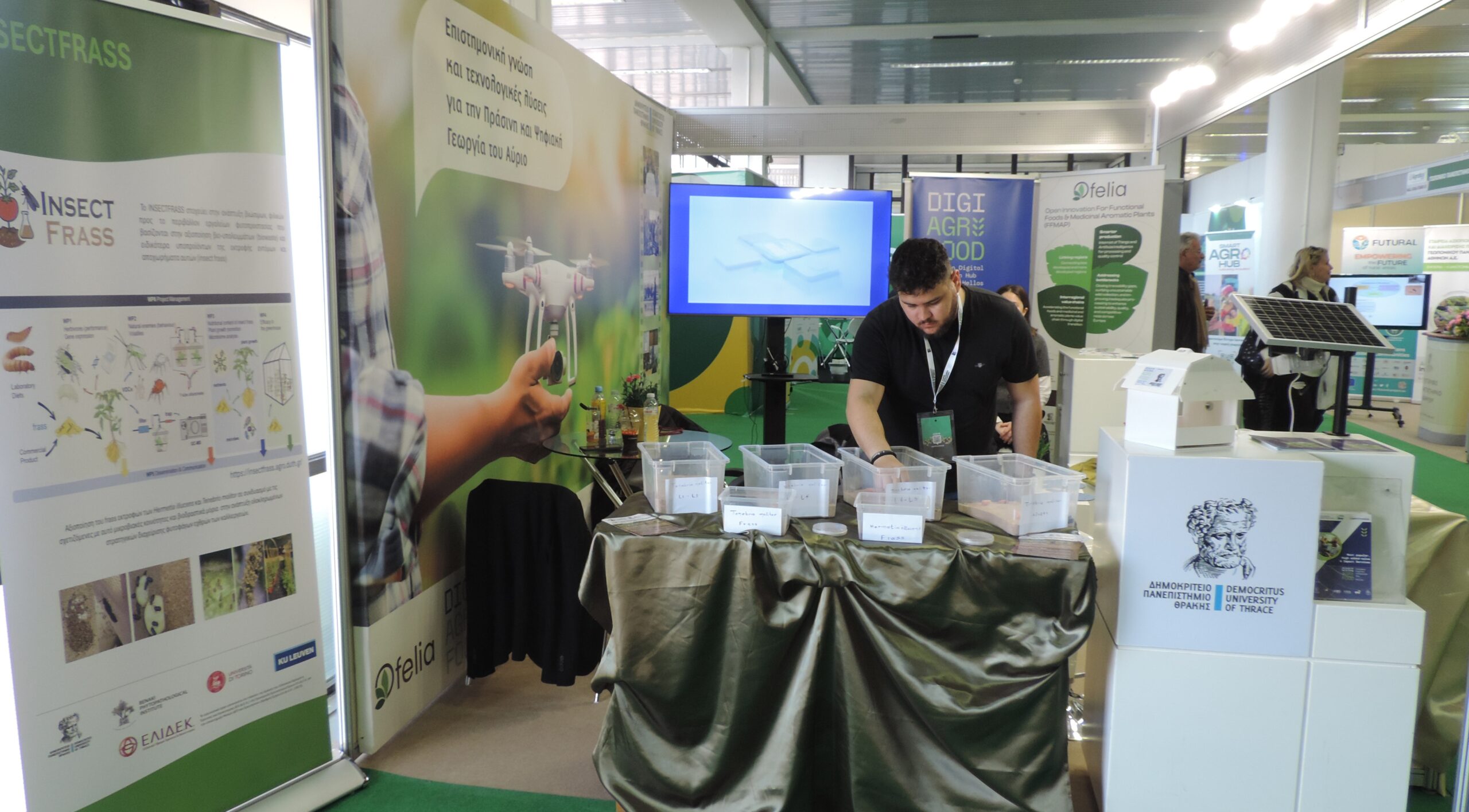 Την εκθεσιακή παρουσία πλαισίωνε το Εργαστήριο Γεωργικής Εντομολογίας και Ζωολογίας, παρουσιάζοντας το έργο INSECTFRASS, που χρηματοδοτείται από το ΕΛΙΔΕΚ, στόχος του οποίου είναι η προώθηση βιώσιμων γεωργικών πρακτικών μέσω καινοτόμων, φιλικών προς το περιβάλλον λύσεων φυτοπροστασίας. Το INSECTFRASS εστιάζει στην αξιοποίηση βιο-υπολειμμάτων από την εκτροφή εντόμων, και ειδικότερα του frass, ως εναλλακτική προσέγγιση για τη διαχείριση εχθρών των καλλιεργειών. Μέσα από τη διεπιστημονική έρευνα, το έργο συμβάλλει στη μετάβαση προς πιο βιώσιμα και φιλικά προς το περιβάλλον συστήματα αγροτικής παραγωγής