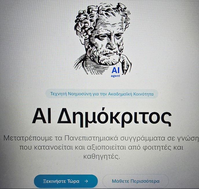 Η εφαρμογή AI Δημόκριτος που αναπτύχθηκε από τον Καθηγητή κ. Τσινάκο στο AETMA Lab του Τμήματος Πληροφορικής του ΔΠΘ, λειτουργεί ως έξυπνος ακαδημαϊκός βοηθός, αξιοποιώντας το εκπαιδευτικό υλικό του Πανεπιστημίου και υποστηρίζοντας ουσιαστικά τη διδασκαλία και τη μάθηση.